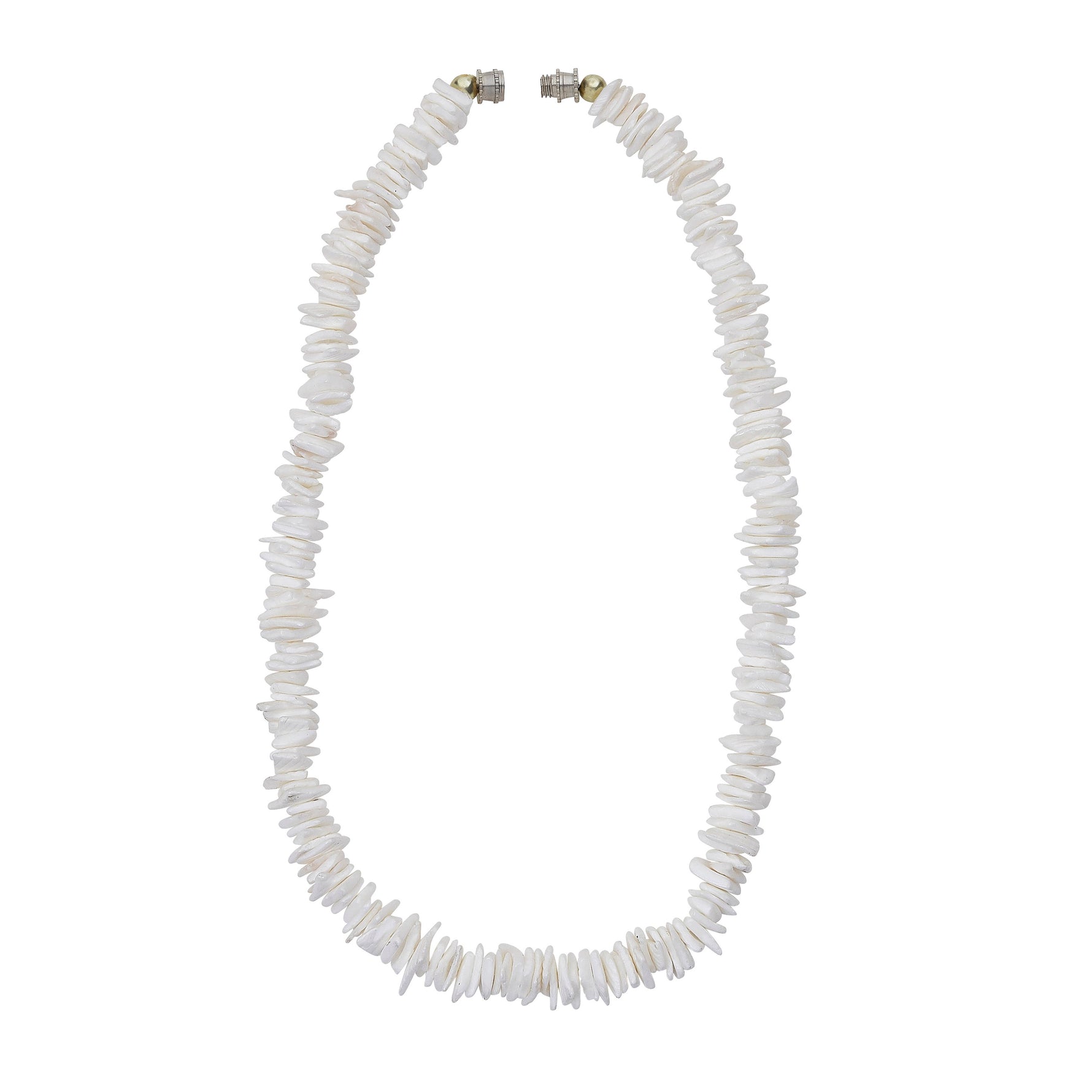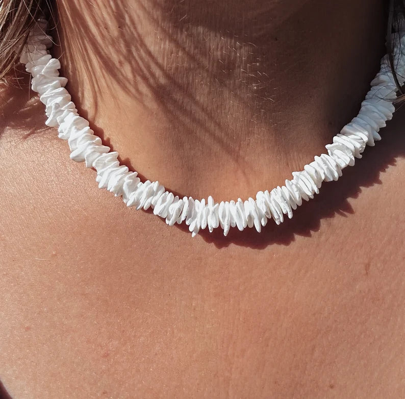 Ce collier de coquillages puka blancs arrondis de 16 pouces est doté d'un fermoir en métal robuste. C'est une manière simple et élégante d'afficher un amour pour la mer, ou un excellent cadeau pour ceux qui partagent cet amour.