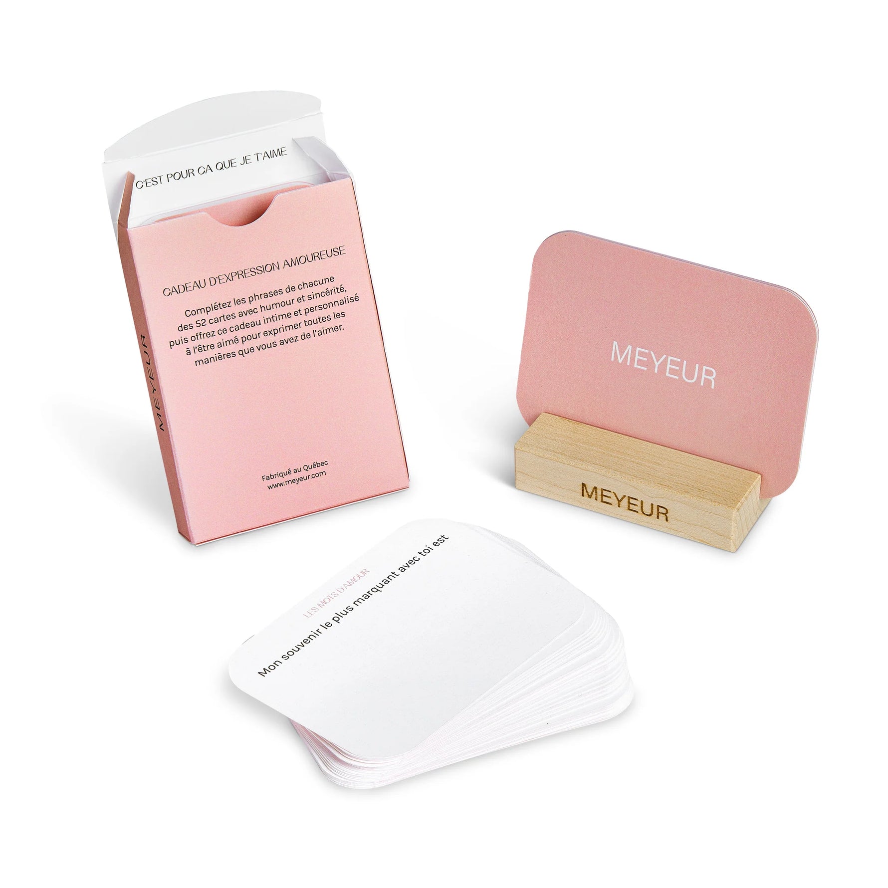 Le jeu Les mots d'amour contient 52 cartes ayant chacune une phrase à compléter à la main, puis à offrir en cadeau à la personne que vous aimez.